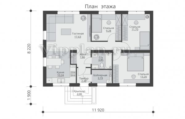 | Размеры дома: | 8.22м×11.92м |