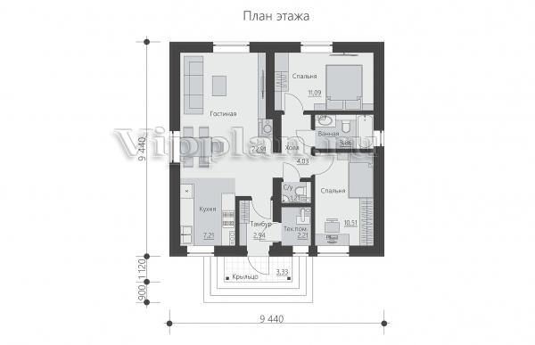 | Размеры дома: | 10.56м×9.44м |